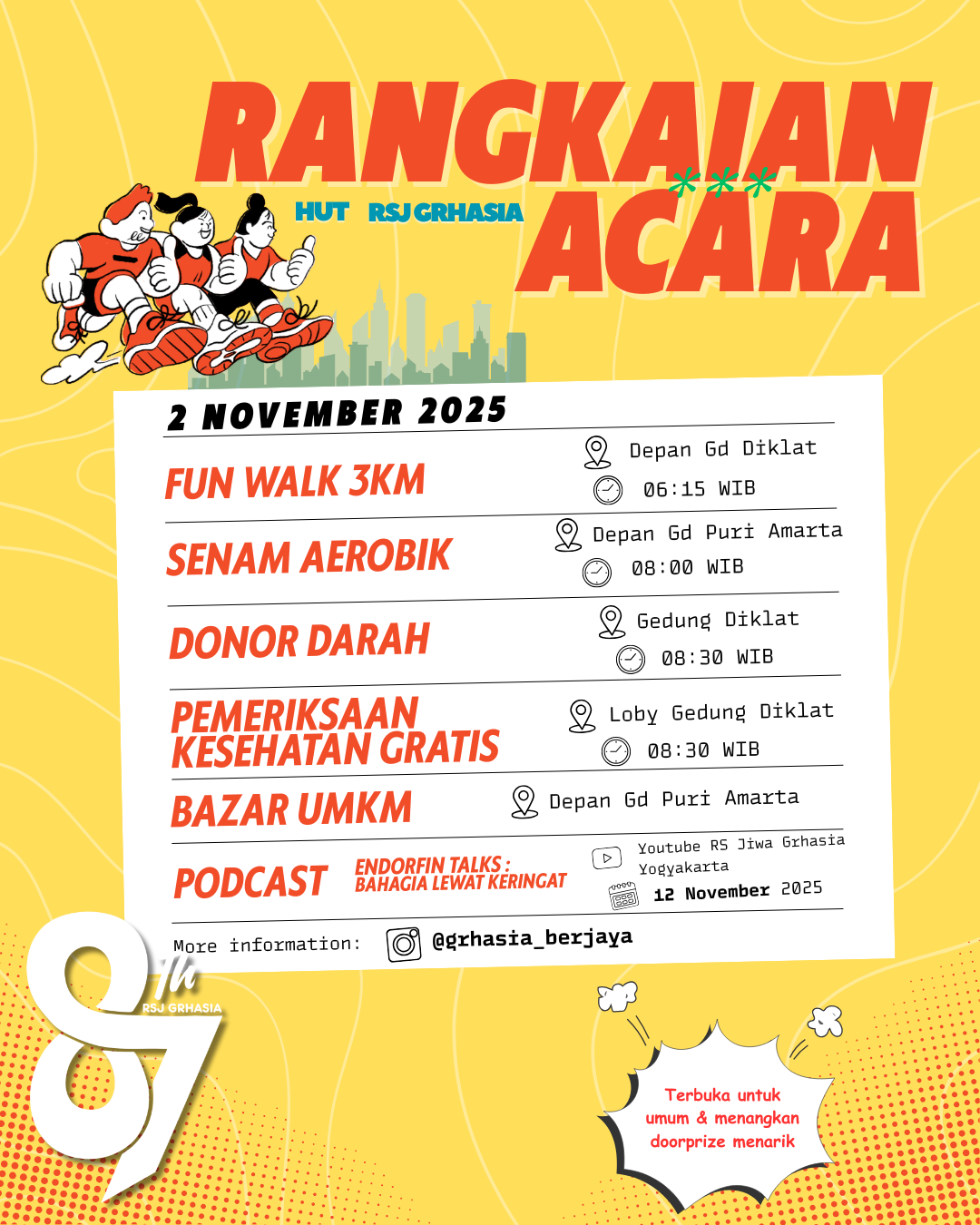 Menghadapi perjalanan spiritual seperti ibadah haji bukan hanya menuntut kesiapan fisik, tapi juga kekuatan mental dan ketenangan jiwa. Yuk, ikuti webinar inspiratif "Kesehatan Jiwa dalam Ibadah Haji (Menghadapi Tantangan Perjalanan Spiritual)" untuk memahami bagaimana menjaga kesehatan mental selama menunaikan ibadah haji.